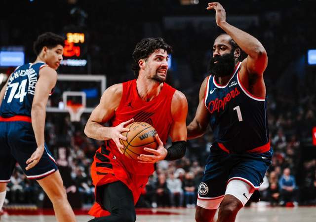 因为大洛不仅能在内线提供护框,还能外拉投射三分,这种风格的中锋,正是泰伦卢体系所需要的。本场赢球就是快船的三位核心发挥出色。哈登38分钟17投10中砍下全场最高的34分外加2篮板6助攻正负值+12。他的状态火热,无论是突破分球还是外线投射,都让开拓者防线疲于奔命。伦纳德则贡献28分8篮板6助攻3抢断1盖帽的全面数据,展现了“卡子”一贯的攻防一体。而大洛佩兹准的离谱,出场33分钟,16投9中,三分线外14投9中,爆砍31分5篮板1助攻2盖帽。这9记三分创下了大洛个人生涯新高,也帮助快船在外线火力上碾压对手。