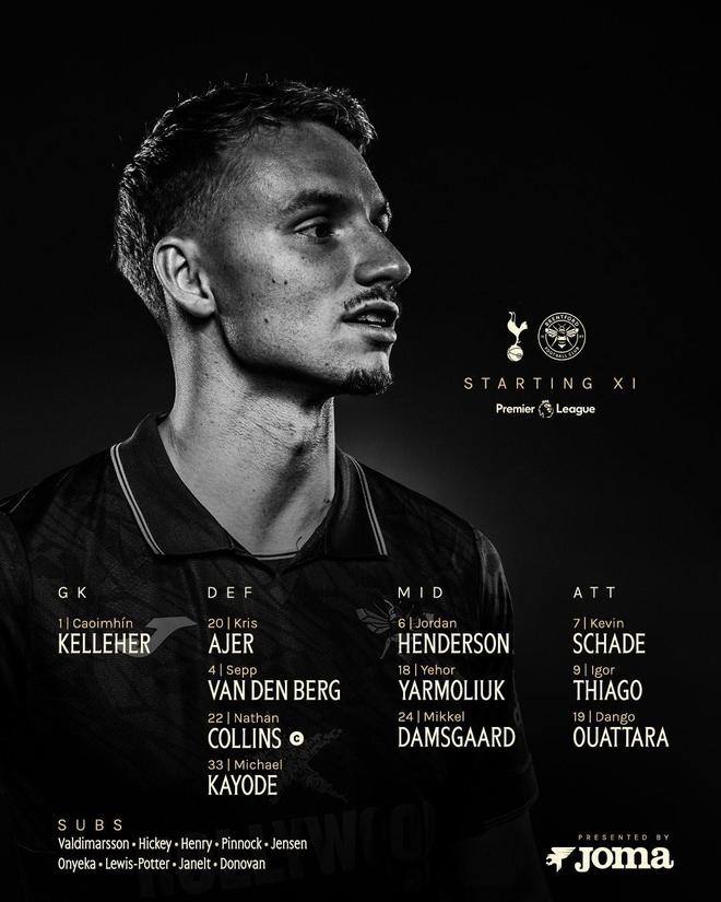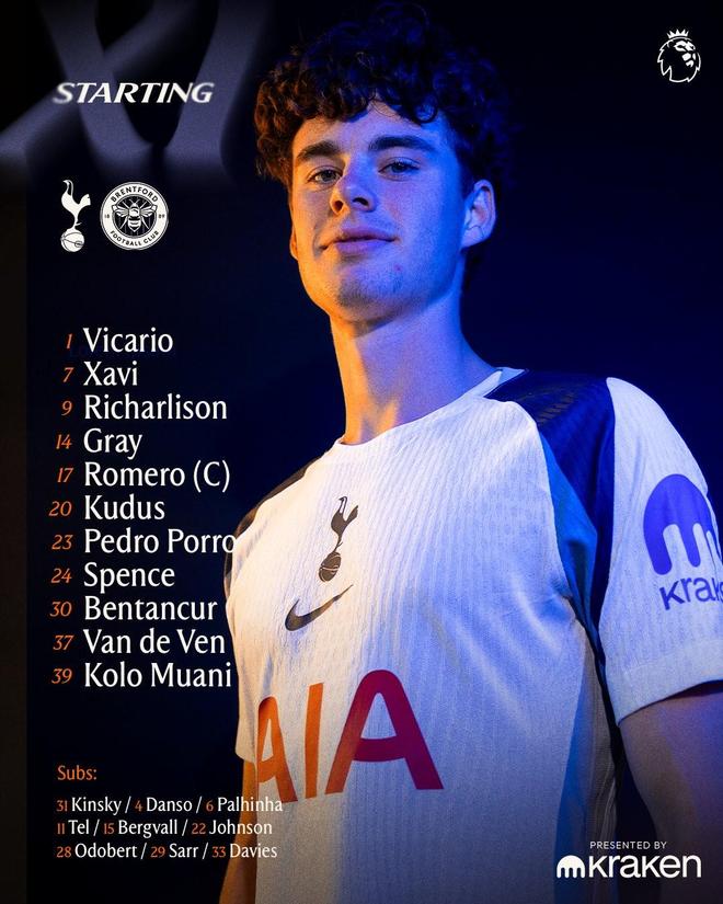 热刺vs布伦特福德:穆阿尼、里沙利松、西蒙斯、格雷首发